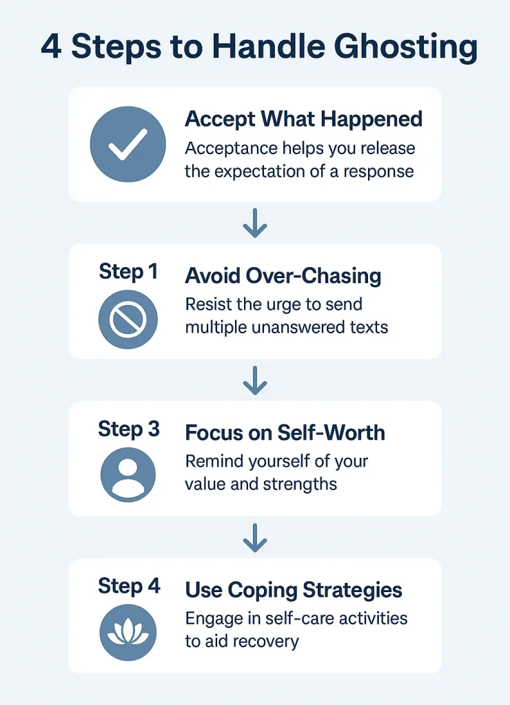 So, how do you handle ghosting? The best approach is to accept what happened, avoid chasing for answers, and focus on your own healing and self-worth. By shifting attention back to yourself, you protect your confidence and keep moving forward.